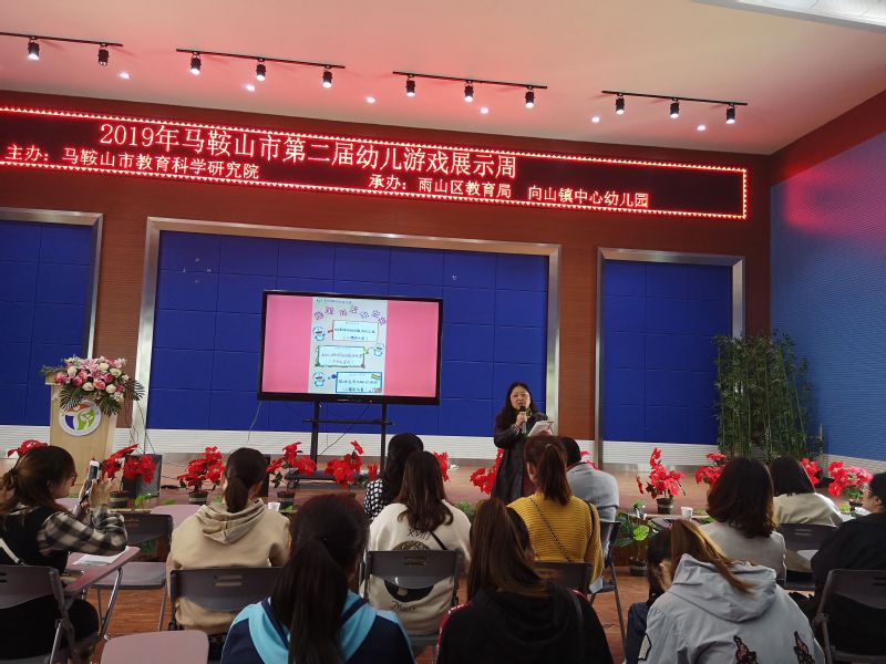 本网讯 为克服幼儿园教育“小学化”倾向,提高全市幼儿园保教质量,马鞍山市教育局于4月23日至5月8日举办了马鞍山市第二届幼儿游戏展示周活动。5月6日,该活动在向山中心镇幼儿园举行,市教育局教科院学前教育教研员尹晓峰和体育教研员陈刚老师以及幼教同仁近80人参加了游戏的观摩和指导。教师教育系党总支副书记、省高职高专学前教育专业带头人吴德琴,学前教育专业教研室主任田雯雯,学前教育专业教师陈龙妹、董文琴参加了游戏现场观摩活动。