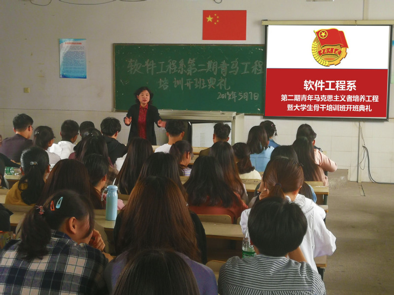 本网讯 为进一步加强校园文明,传承优良校风和学风,推动素质教育工作的深入开展,软件工程系于5月7日在博学楼E606,启动第二期青年马克思主义者培养工程暨大学生骨干培训班开班典礼。系党总支副书记王莉娟、辅导员张申羽、李顺顺参加了本次活动。开班典礼由系团总支书记曾甜主持。