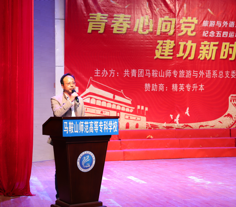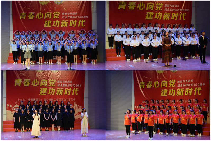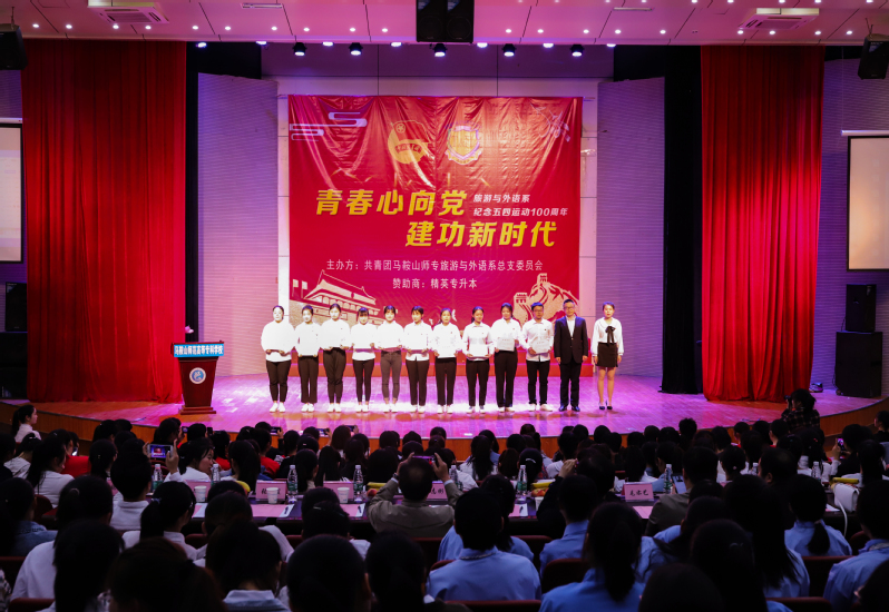 本网讯 5月6日晚,由共青团马鞍山师专旅游与外语系总支委员会主办的第五期青年马克思主义者培养工程暨大学生骨干培训班优秀学员表彰暨第二届“青春心向党·建功新时代”班级合唱大赛隆重举行。系主任王结贵,系党总支副书记汪志彬,系副主任王德军,系团总支负责人、副书记陈燕,系团总支副书记姚浩,全体辅导员和2018级全体学生共五百余人齐聚音乐厅,唱响经典旋律,传承红色基因,以青春的名义共同纪念五四运动一百周年。