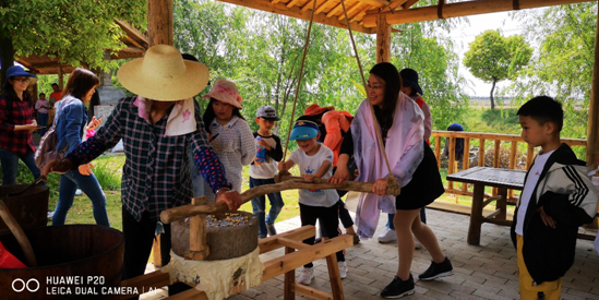 大家先是观摩和体验传统打铁、编制草鞋和磨豆腐等农耕时代的基本活动,然后参观了大米与菜籽油加工车间,又体验了传统的丝网、地笼捕鱼等渔家活动。