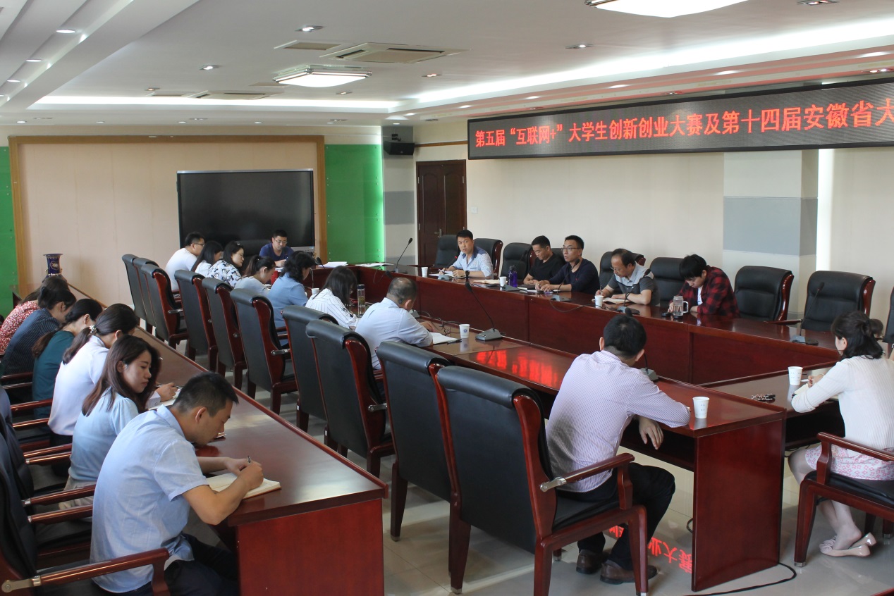 本网讯 5月22日,学校在行政楼302会议室召开第五届“互联网+”大学生创新创业大赛及第十四届安徽省大学生职业规划大赛动员会。校党委委员、副校长李秀华出席会议并讲话,学工部副部长、学生处副处长汪志彬,学生处副处长潘庆云,保卫处负责人、副处长刘武,各系分管学生工作领导,各系就业工作专员,全体就业、创业课程教师参加会议。会议由招生就业办公室副主任晋愈飞主持。