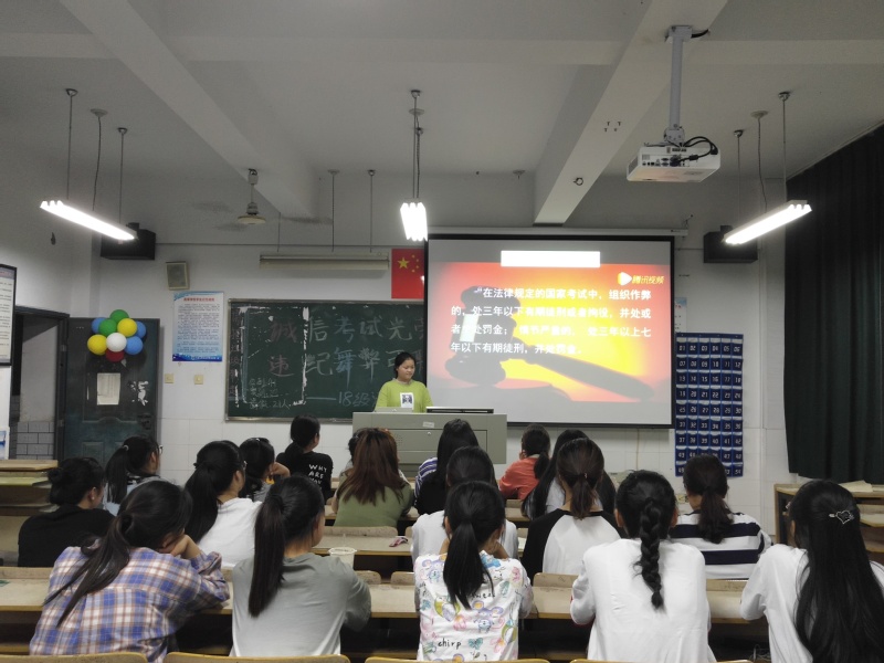 本网讯 诚信是中华民族的传统美德,更是当代大学生应该具备的道德品质。高考将至,为了确保2019年普通高考平稳、有序进行,净化考试环境,切实维护高考的严肃性,打击有组织作弊和替考等犯罪活动,根据省教育厅《关于高考期间加强高校在校学生管理的通知》要求,旅外系于5月23日晚组织各班级开展了“诚信考试光荣,违纪舞弊可耻”主题班会教育活动。