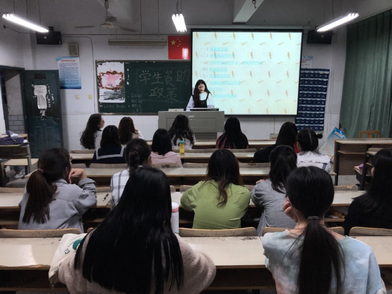 此次班会首先由各班宣传委员向班级同学介绍国家及学校“奖、贷、助、勤、补、减”等多项资助措施。18级酒店管理三班的宣传委员通过播放视频的方式,向班级同学介绍了国家资助政策体系的“三个全覆盖”,其包括各个学段全覆盖、公办民办学校全覆盖和家庭经济困难学生全覆盖,具体资助包括国家奖学金、国家励志奖学金、国家助学金和国家助学贷款等;18级应用日语班的班长通过自己在学校勤工俭学岗位的经历,述说自己受到的帮助。接下来,各班宣传委员积极倡导诚实守信精神,比如在申请各项资助的时候要如实反映家庭困难情况,切不可弄虚作假;在获得国家助学贷款后,要积极践行契约精神,及时如期还款等。