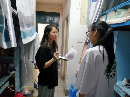 陈珂询问所联系新生近期情况,重点讨论新生入校一年以来所面临的学习、生活等方面的问题,她结合了自己的经历,和新生们一起讨论关于参加专升本、自考以及成人高考、教师资格证以及考编,计算机相关的证书,还有关于学校双证书毕业等所遇到的问题与困惑。陈珂对学弟学妹们提出的问题都进行详细的解答,并向他们介绍了自己在校期间积累的经验,在与新生聊天的过程中,陈珂发现,他们对自己未来的目标性都很明确,学习上也比较积极,陈珂看到新生们都这么认真,她很高兴并且希望他们可以一直这样努力下去。陈珂说:“新生们身上努力的劲头感染了我,身为一名大二的学生,学习劲头也偶尔会有所懈怠,通过学生党员联系新生宿舍活动,同学们之间有了更多的交流,目标更加明确,新生们踌躇满志,让我也看到了曾经的自己。激励我更加不断努力向前。”