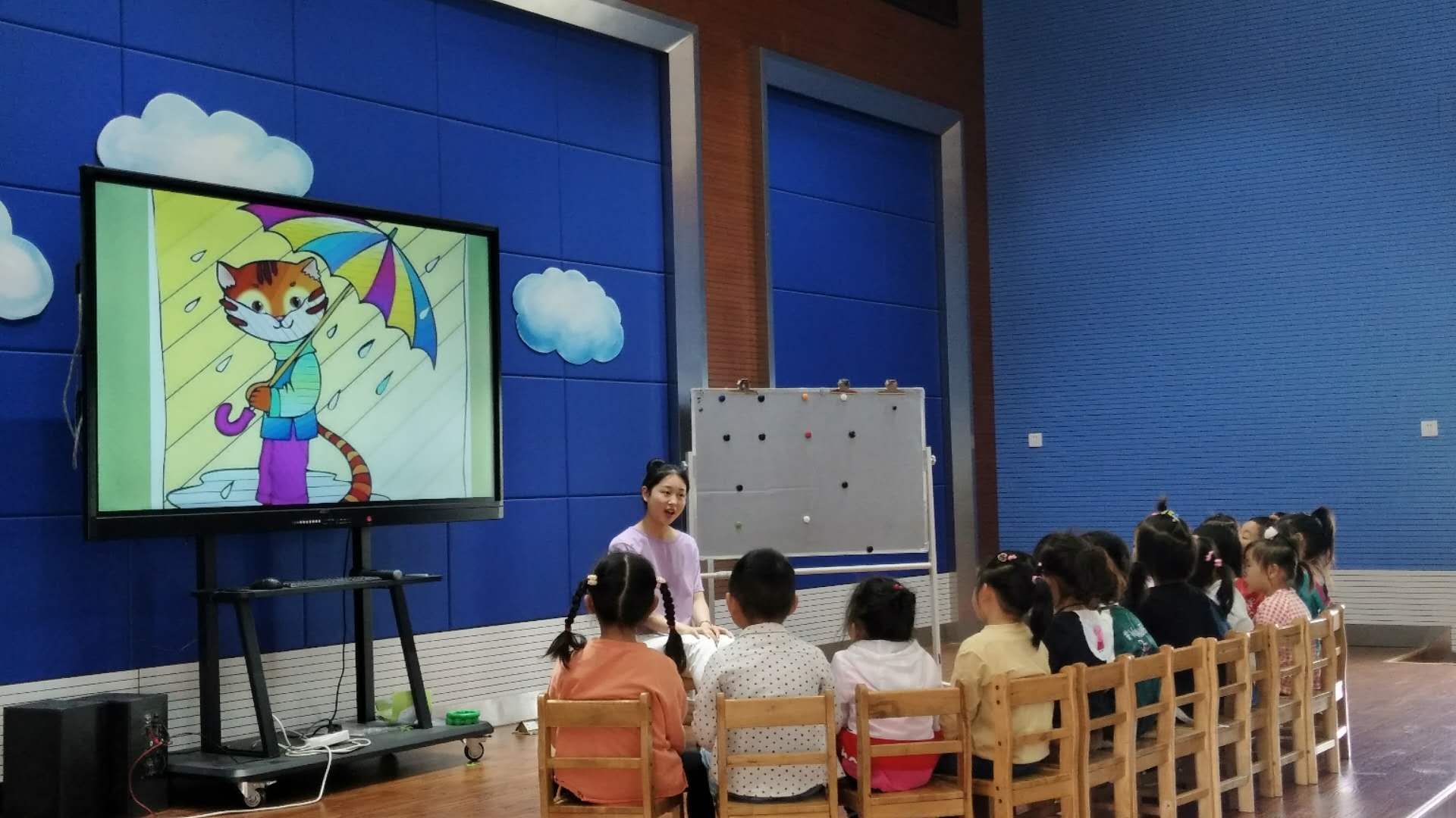 第一个活动是由17级学前教育三班的张淼进行的小班音乐游戏《大雨和小雨》,老师通过语言、动作等让幼儿尽快融入课堂氛围,幼儿通过自己的身体动作来表达自己对小雨大雨的感受,从而分清声音的强弱,课堂气氛非常活跃。