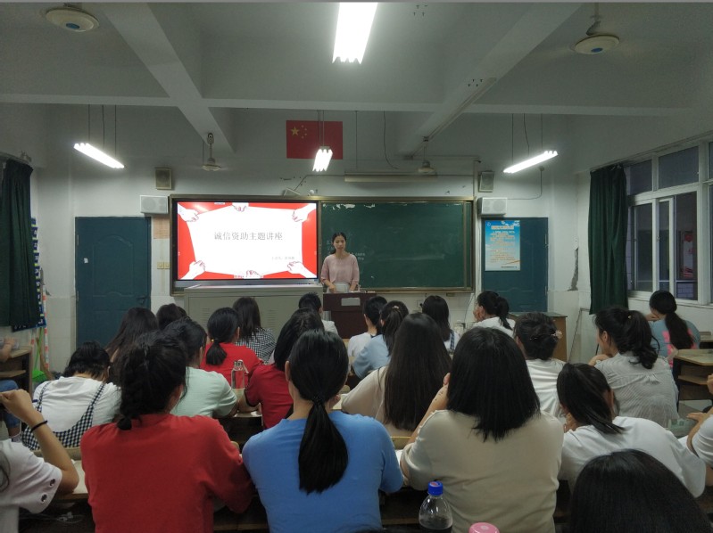 本网讯 为了大力宣传国家资助政策,加强对大学生的励志、感恩和诚信教育,进一步培养学生诚实守信的精神和品格。6月2日下午7时,食品工程系在博学楼501举办了资助诚信教育主题讲座。大三辅导员陈俊敏老师应邀主讲,大一全体学生参加了此次讲座。