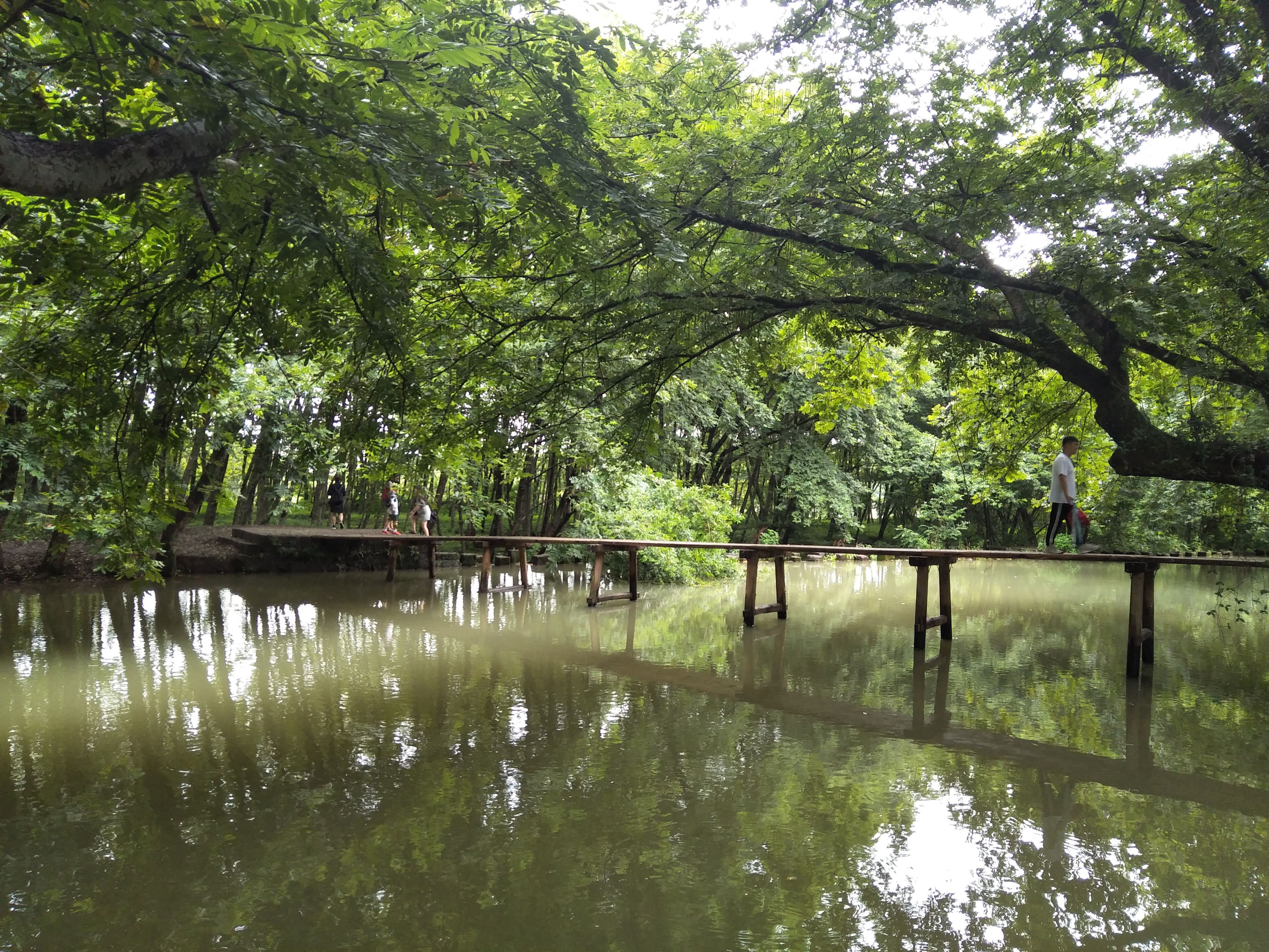 7月5日上午,大家继续启程,乘车前往了当天的第一站,西溪南湿地。西溪南湿地位于徽州区西南部,是黄山新城的北大门,2009年6月被安徽省委省政府确定为第一批扩权强镇试点镇,现已被列入黄山市新一轮城市发展核心区域,区位优势十分明显。岩竦公路、黄山经济开发区梅林大道及北京—福州、杭州—黄山高速铁路,皖赣铁路三条高铁并站建设的黄山北站设在境内长林村,即将建设的歙县界牌岭至黟县渔亭一级公路穿镇而过,交通非常便捷。穿过村落,走过木桥,远离城市的喧嚣,给同学们的心灵带去更多的宁静,也从侧面让同学们了解了古村落的文化以及蕴涵。