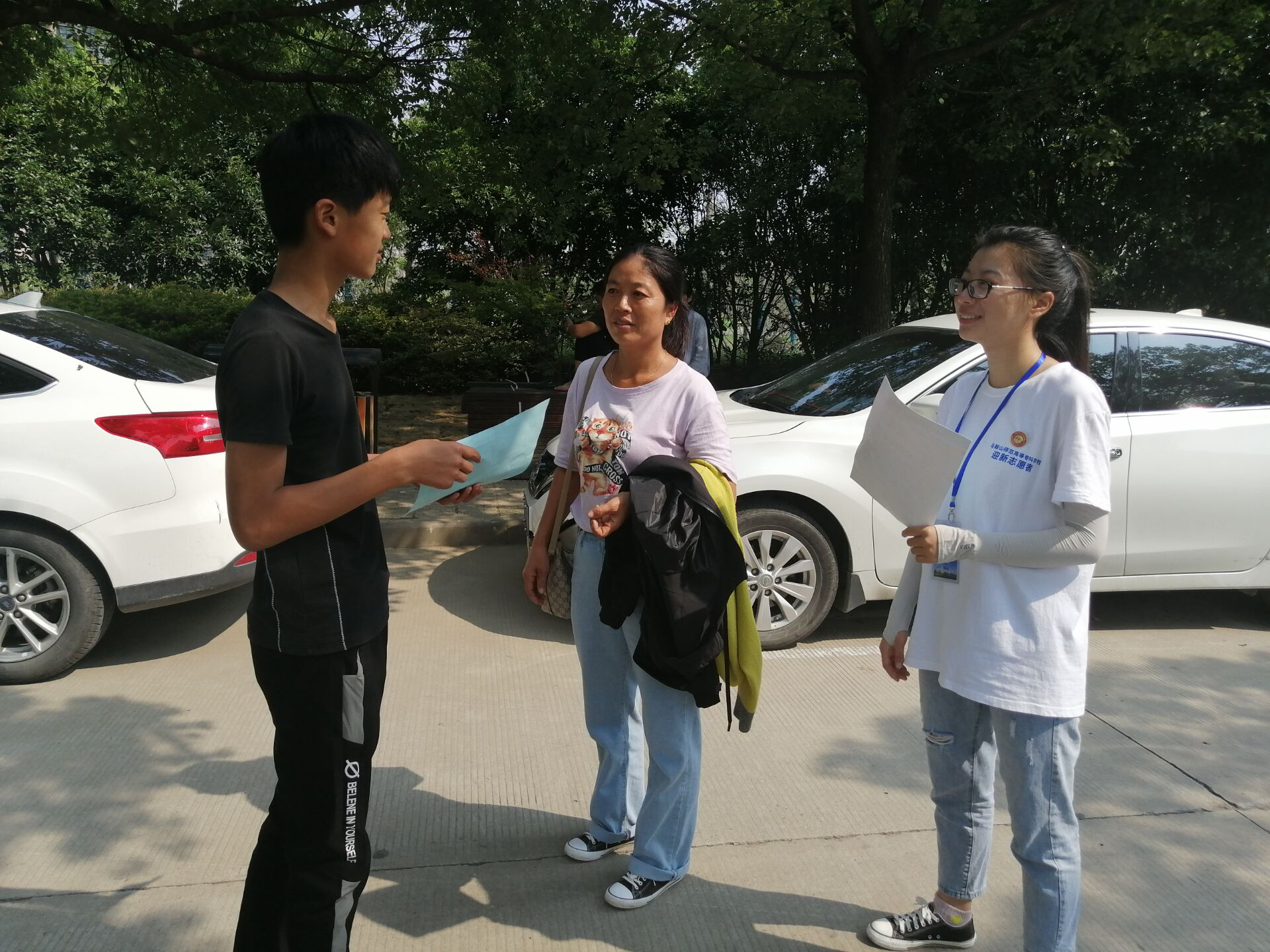 第一次来到我们美丽的马师专,既新鲜又陌生,看到新生与家长的迷惑,我们的志愿者小姐姐主动地上去询问有什么需要帮助的地方,并耐心的给予解释。