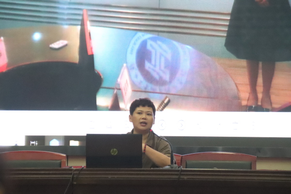 会议开始前,马幼梅主任播放了2019年学校春晚联欢艺设系教师表演的视频,用这种特别的方式让新生们认识了系里的老师。会议被分为四个部分,第一部分马幼梅老师是让新生们了解了马鞍山这个有秩序而又低调的城市和马鞍山师专的发展历史。第二部分通过图片介绍了我们系的优秀教师们,他们分别是何琪、徐凯、刘娴、王越、黄琦、马萍萍、轩德军、马宗禹老师,和同学们一起分享了这些优秀老师的专业比赛经历。第三部分紧接着介绍了我们系部各个专业的教学设备以及专业的固定教室,让新生们更进一步的了解了自己未来三年内生活奋斗的环境,做好大学三年的成长规划。第四部是马幼梅主任讲述了自己的学习征程和切身经历,声情并茂地展现了自己当初一步步实现梦想的坚毅步伐。并在学习和生活等诸多方面都给大一新生很多很好的意见和建议。热情而充满亲和力的发言感染了在座的每一位学子,增强了学子们的自信心及对梦想的无限向往。