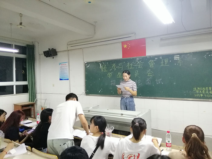 本网讯 为招纳更多优秀的学生加入学生会组织,充分发挥学生的主体作用,确保系部学生工作的顺利开展。9月10日,经济与社会管理系(思政部)团总支于博学楼E206、306教室开展该系学生会第一轮招新面试。此次面试由学生会主席及各部门部长负责。