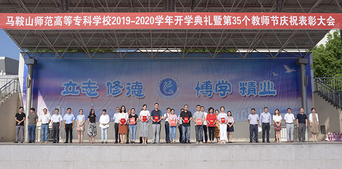 本网讯 为表彰我校教师爱岗敬业、无私奉献的精神面貌,传承和弘扬校园文化,展现人文品味和人文关怀。9月9日,马鞍上师范高等专科学校全体老师及新生欢聚学校操场,隆重举行了2019级新生开学典礼暨庆祝第35个教师节表彰大会,经济与社会管理系(思政部)积极参加了此次活动。