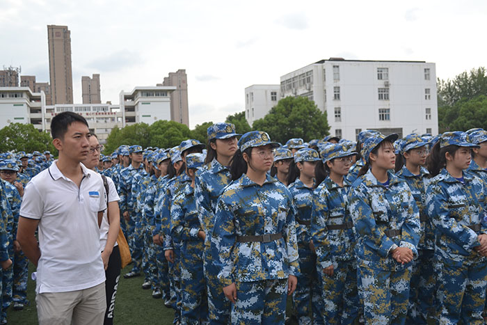 开营仪式结束后,同学们开始了为期13天的军训生活。烈日炎炎下,同学们的热情并没有丝毫的衰减。整理仪容仪表、站军姿、队列训练,同学们做到一丝不苟,力求得到教官的认可。该系辅导员欧阳文清,卢洋,班主任陈月婷,郭伟在与新生同样站在火热的太阳下,耐心的观察学生的表情与异常,为同学们的军训增添了许多温馨的关怀。