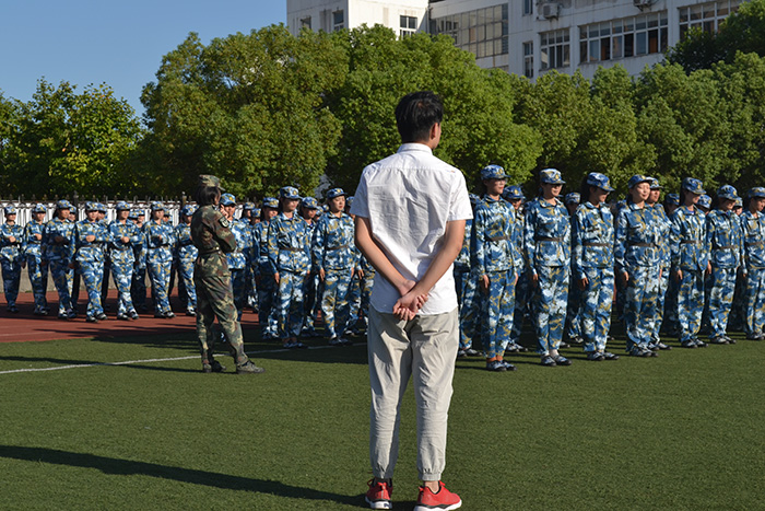 镜头一转,来到训练场上。该系部学生会主席汪睿洋正在查看学生们的训练情况。