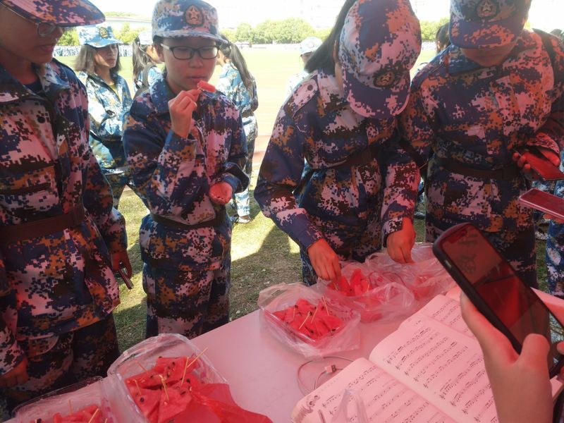 截至目前,军训进行到了第四天。看着身姿挺拔的帅气教官带领着各方阵站军姿、踢正步,烈日当头,教官与新生们已汗流浃背,该系部军训服务站的桌子上,早已摆好了切好的西瓜等着他们的享用。贴心的西瓜派送,无疑给炎炎烈日下的艰苦训练带来了丝丝凉意。休息期间,参训的同学们有秩序地排队前来品尝。“真是太贴心啦,怕我们中暑,考虑的很周全,吃了西瓜感觉又充满战斗力啦!”一位参训同学说道。