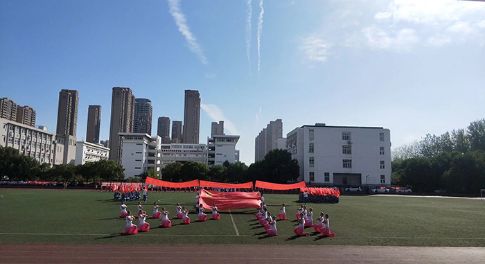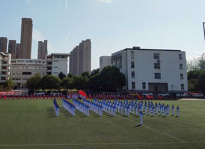 广播操比赛开始了,该系部参加广播操比赛的队员们分别从偌大操场左边,中间,右边三处入场,左右都是神采奕奕的彩旗队,中间是穿着美丽彩裙,画着精致妆容的舞蹈队少女们,随着音乐的响起,彩旗队变换出“中国”字样,舞蹈队也摆出了70这个意义非凡的数字,该系部的表演让人深深感受到了她们对祖国70周年的祝福,对祖国的热爱。舞蹈队少女优美的舞姿,靓丽的面庞,给观众带来很好的视觉体验,赢得了在场观众的热情掌声。