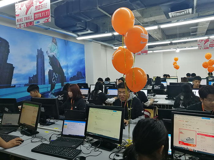 迎战双十一是同学们本次认知实习的主要任务之一,在为期八天的培训结束后,同学们开始了上线工作。推荐尺码,介绍产品,退货,换货是双十一同学们遇到的最常见的问题,“在真正上线的那一刻,才意识到自己的身份已有所不同。”很多同学在上线后这样感叹道。从买家到卖家的身份转变,让同学们深刻认识到以自身现在所处的岗位。双十一前夕,晚上8点到第二天早晨9点是移动商务(1)班支怡辰同学双十一的上班时间,她说道:“虽然夜班很辛苦,但我却真切的感受到每一位工作者都是平凡而伟大的,我更从这样的特别的体验中学到了书本李没有的。”