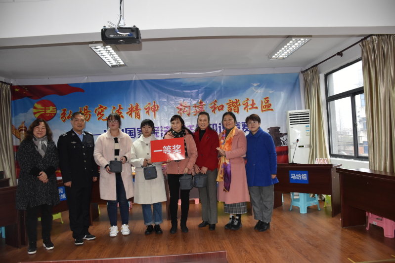 首先由雨山司法所所长方锐为本次活动致词。他表示,希望通过本次活动在丰富社区社会生活之外,更加增强大家的法治观念和依法办事的自觉性。随后,参赛选手经过抽签决定分为安民大治组、山南组、雨南组和马纺组,每组队员分别由有2名师专学生和社区居民代表、社区工作人员各1名组成。本次比赛有三个环节,分别为必答题,抢答题和风险题。在必答题部分,各组选手稳定发挥,以30分战平;之后进行抢答题部分,这不仅要求大家有扎实的基本功,同时也考验参赛人员临场反应的能力。历经紧张激烈的抢答环节之后,比分逐渐拉开,其中安民大治组凭借敏捷的反应力遥遥领先,与此同时比分稍有落差的雨南组不甘落后,继续再接再厉。随着比赛进入第三环节,现场氛围也达到了高峰,山南组选择了挑战大、收获大的30分的风险题,而安民大治组则选择稳中求进的战术,选择了10分题。安民大治组最终以150的成绩获得本次活动的冠军。活动结束,各位评委为本次参赛学员颁发了荣誉奖牌及奖品并致以真诚的祝贺。
