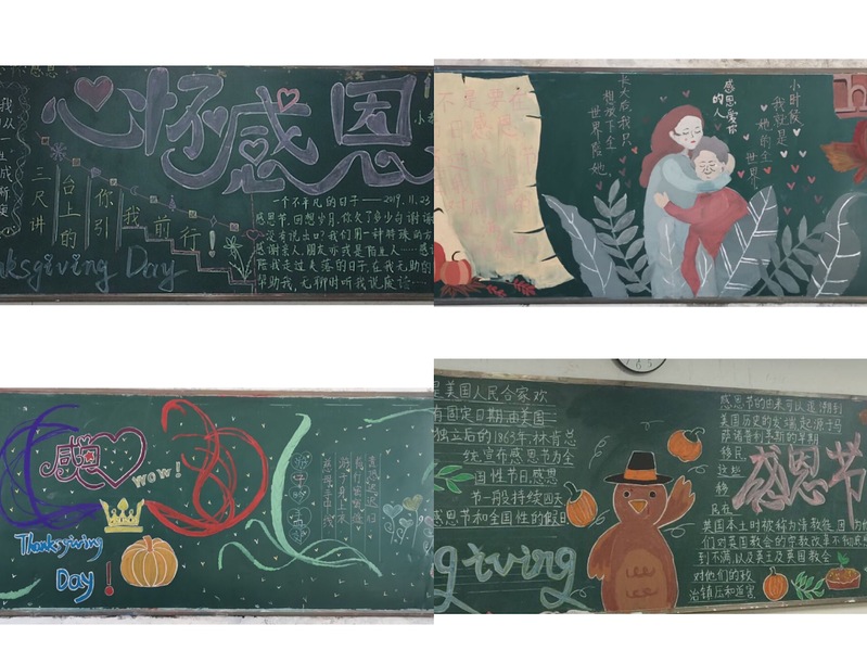 本网讯 11月28日,教师教育系(基础部)青年志愿者服务队组织各班级开展了感恩主题班会和感恩节主题板报绘制活动。
