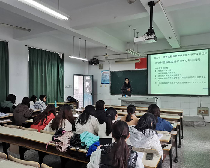 除此之外,曹满丹还运用情景式课堂教学理念。将枯燥的理论知识与日常生活相融合,以具体的主营业务成本及本年利润为案例,生动形象的向同学们讲解费用的结转。使知识传授离开了生硬的灌输,依靠同学们自然生成。课堂最后,曹满丹对知识点进行总结概括,帮助同学们梳理知识结构。同时,她针对本堂课内容设置练习题,进行选择性的复习巩固。同学们立即拿出纸笔专心解答,答案提交后,曹满丹对于同学们的解答表示满意,她指出,会计基础课程对数学具有一定要求,同学们可能感到晦涩难懂,但要保持信心,勤加练习,对于老师提出的重点难点,课后需进一步学习理解,希望学的顺利的同学保持谦逊,学的吃力的同学也要相信,自身的潜力是无限的。课后,同学们纷纷为曹满丹新颖独特的教学方式,务实高效的教学过程表示赞叹。