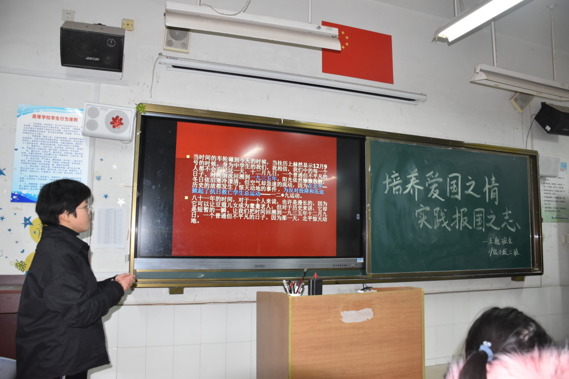 2019级小学教育二班将中国的抗日战争的艰苦历程与建国后祖国投入生产建设的进取精神以PPT的形式呈现出来,让同学们更加直观的了解了革命先辈的伟大与今天的幸福来之不易。