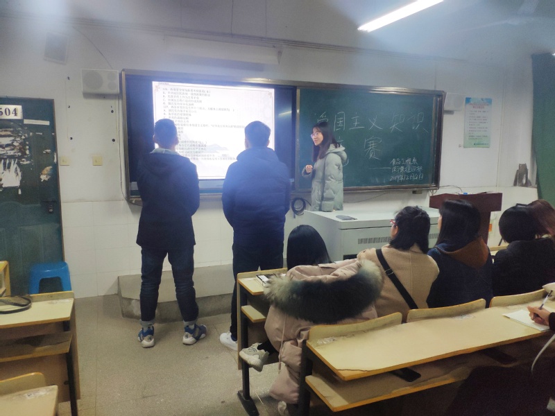 本网讯 为进一步弘扬社会主义核心价值观,习近平新时代中国特色社会主义思想,培养同学爱国爱党精神。我系特在新中国建立70周年季,系学生会学习部、组织部举办以弘扬爱国主义为核心的知识竞赛。竞赛于2019年12月4日19:00在博学楼504教室拉开帷幕。