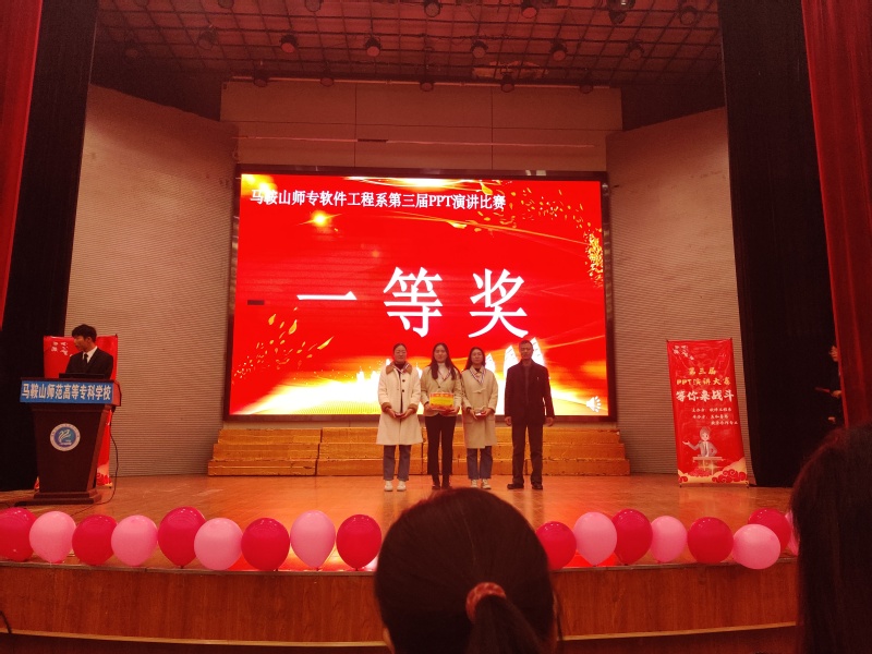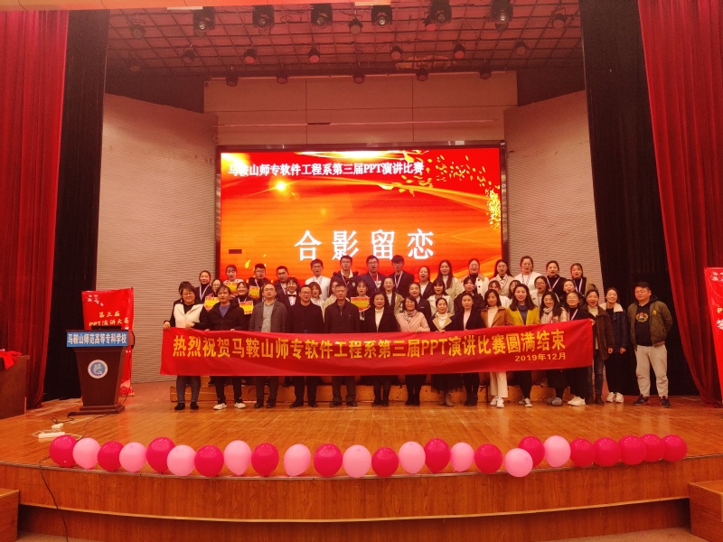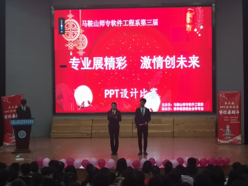 本网讯 为了提高同学们对PowerPoint的制作、应用水平,提升同学们的语言表达能力与综合素质,加强专业同学之间的学习交流与沟通,培养和发掘各种人才,2019年12月8日下午,软件工程系在音乐厅隆重举办了第三届“专业展精彩 激情创未来”PPT演讲比赛。出席本次活动的有:马鞍山师范高等专科学校党委委员、副校长刘恒、软件工程系副主任鲁兵、党总支副书记王莉娟、副主任杜丹、美和易思企业领导及专业课教师。
