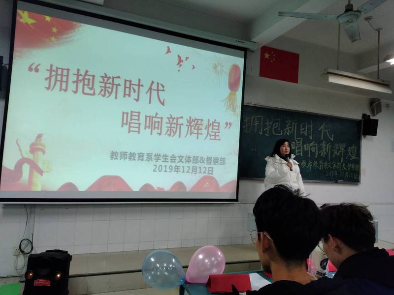 本网讯 为展现深厚的校园文化底蕴和奋发向上的校园新风貌,同时也为同学们提供一个展示自我才艺的舞台,12月12日,教师教育系(基础部)在修德楼206举办了以“拥抱新时代,唱响新辉煌”为主题的歌唱比赛活动。活动由该系部学生会文体部和督察部联合举办。