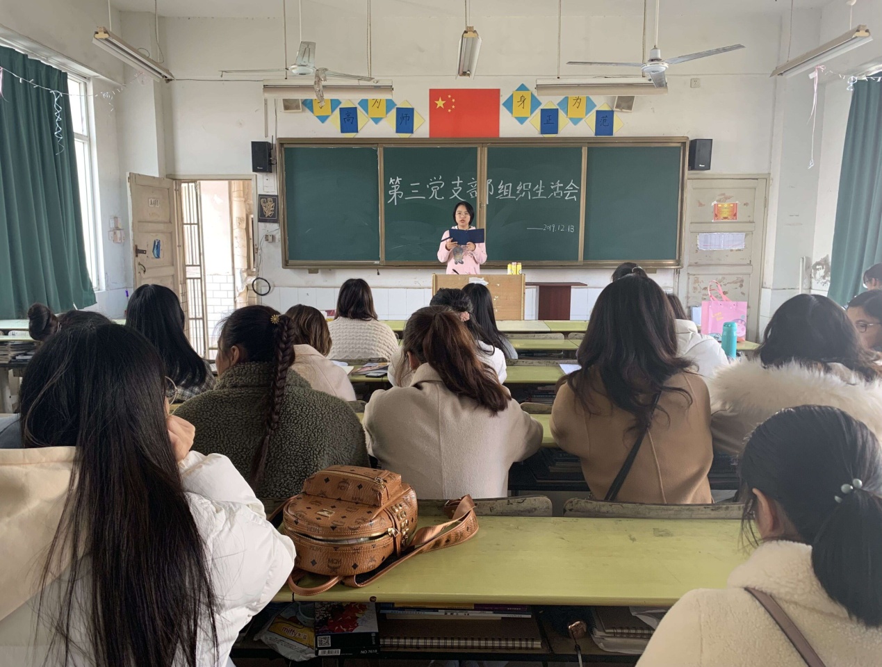 本网讯 12月13日,教师教育系(基础部)第三党支部在A401召开了组织生活会暨民主评议党员支部大会,会议由该支部书记于晨晨主持,支部全体师生党员参加了会议。