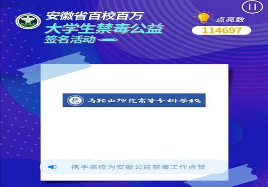 本网讯 为全面做好毒品预防宣传教育活动,提高全校师生识毒、拒毒、防毒、禁毒能力,我校在“全民禁毒宣传月”开展了“为母校增光,禁毒公益墙由你点亮”的禁毒宣传教育活动。我系同学们纷纷为母校加油,“点亮人数”日益增长。
