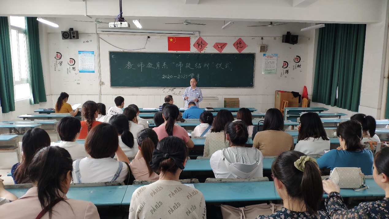 本网讯 9月25日,教师教育系2020-2021学年“师徒结对”仪式在A106顺利举办。系主任秦东方,党总支负责人、副书记吴德琴以及“师徒结对”教师参加了仪式。本次仪式由秦东方主持。