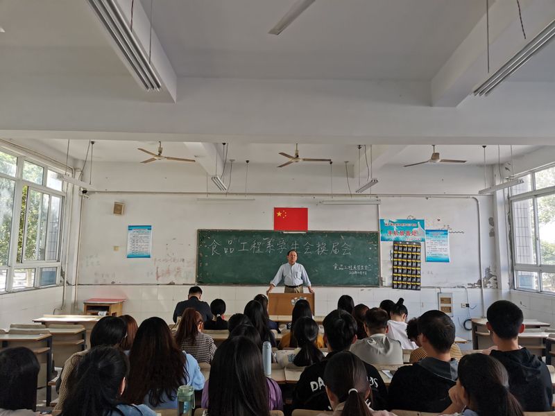 本网讯 食品工程系于10月9日中午12:30在博学楼106教室举行了第五届学生会换届。食品工程系党总支书记胡风明和团总支副书记、学生会指导老师孙兴敏出席了此次大会。