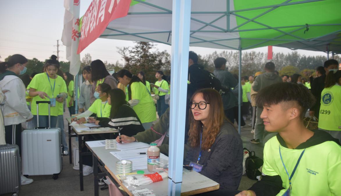 新生陆陆续续进入校园,由志愿者们带着新生走报到流程。面对新生来讲是充满着未知的学校,一切都是那么新奇。他们一口一个“学长”、“学姐”,向志愿者们追问着他们关心的问题,志愿者们也很热心地给予解答。
