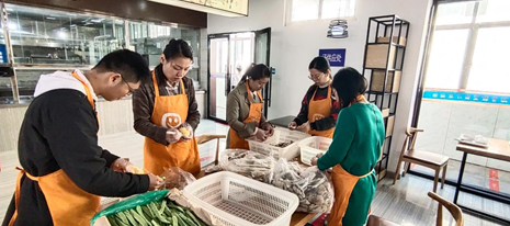 第一支部的党员教师在餐厅开展帮厨志愿服务活动,体验后勤餐饮服务工作。食堂作为学校的后勤服务的重要部门,服务广大师生,做好帮厨更是要当好助手。
