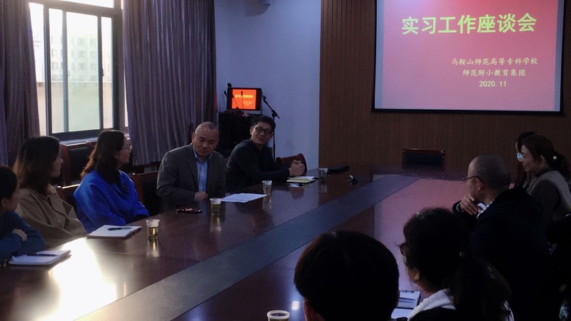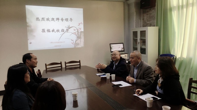 在西湖花园小学,梁俊校长热情主持了接待会,教学副校长张大治和教导主任华燕参会。几位小学领导回忆了当年在马鞍山师范学习的情景,介绍了西湖花园师资队伍建设情况、在校生规模,以及对此次实习生的安排情况。张勇军副校长介绍了马鞍山师专这些年的发展壮大历程,并感谢西湖花园小学对此次实习的大力支持。