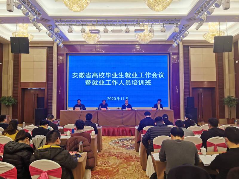 本网讯 11月24日至26日,2020年安徽省高校毕业生就业工作会议暨就业工作人员培训班在芜湖召开。省教育厅学生处处长陈锋,省大中专毕业生就业指导中心主任袁江林等领导出席,会议由袁江林主持,全省119所高校就业部门负责同志和工作人员参加了此次会议。