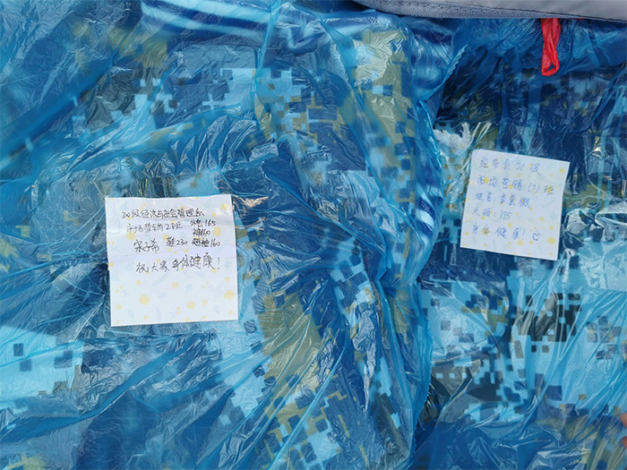 此次捐赠活动由20级市场营销三个班的同学参加,同学们将不再穿的军训服装整理运至向山的一处工地,分发给工人们。据了解,该系部的军训服装回收工作持续了将近15天,共回收近60套衣服。活动过程中,志愿者们仔细、工整地将军训服叠好并用包袋进行包装,同时做好相关记录,标明衣服的尺码,最后还写上对工人们的祝福。同学们留下的一张张便签向工人们传达了冬日里最温暖的问候。欧阳文清表示,捐赠军训服是一场非常有意义的活动,不仅可以使资源循环利用,也可以将爱心传递。同时,何成尧老师也表达了自己对于工人们的关心,叮嘱工人们注意身体,最近气温骤降,要做好保暖工作。