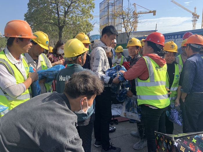 一件件小小的军训服,让工人们的心里充满了温暖与感激,也让青年志愿者们体会到了人间的爱与温情。分发完毕后,工人代表们纷纷表达了自己内心的感激之情,脸上洋溢着幸福的笑容。
