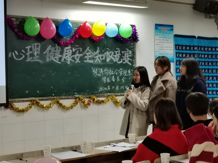 本网讯 为普及大学生心理健康知识,加强心理健康教育工作,促进大学生全面协调发展。11月25日,经济与社会管理系(思政部)团总支积极组织开展心理健康安全知识竞赛。