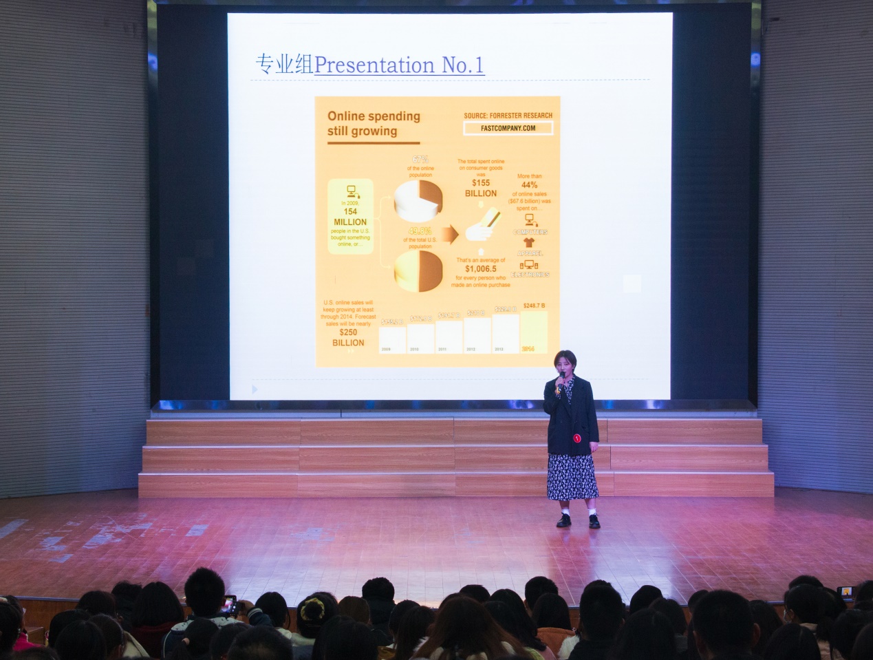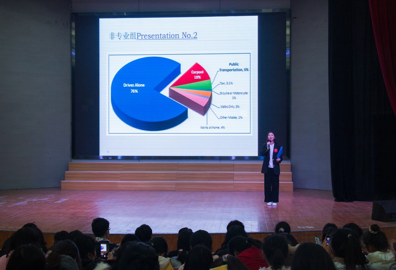 专业组和非专业组分开比赛,两个组别的前四名选手晋级参加即席辩论。台上的选手们努力地展示出自己英语水平,台下的评委老师也在仔细认真地为每一位参赛选手打分。全英文的问答互动充分体现选手的语言运用与灵活应变能力。选手们为了最后的胜利力争发挥出最好的水平,整个赛程紧张而激烈。