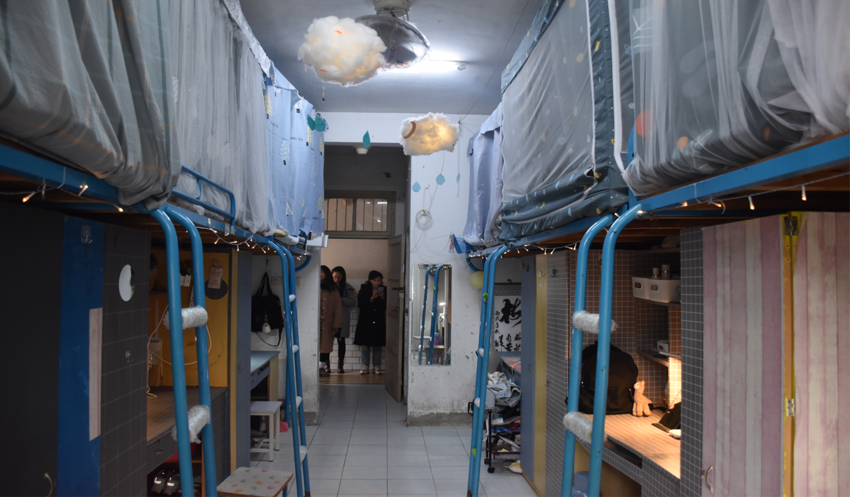 中午12点,教师教育系对参与比赛的宿舍进行最终评比。只见整洁的地面、整齐的被子、温馨的装饰、和谐的氛围在该系学生寝室中展现得淋漓尽致!各个寝室的风格不一,有的装饰得十分喜庆,有的装饰得特别温馨,有的则清新素雅。其中2栋308女生宿舍让人眼前一亮,该宿舍成员对宿舍的墙体、天花板、门窗都进行了精心的装饰——贴上了干净漂亮的墙纸,挂了可爱的手工门帘,墙顶蓝色的小云朵更是凸显生活的情调。同时,本次活动也充分调动了同学们的积极性,展现了他们的动手能力,同学们利用身边的小物件,把自己的宿舍布置的缤纷多彩,部分宿舍还养有绿植,亮点纷呈。
