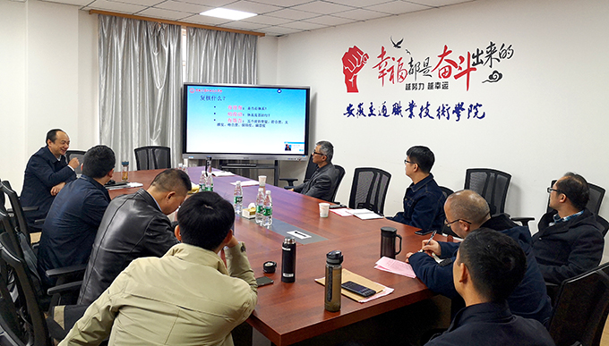 4月2日上午,考察团来到安徽省交通职业技术学院,受到副院长王丰胜及各相关部门负责人热情地接待。王丰胜简要介绍了学院办学历史、办学特色,内部质量保证体系建设和运行机制建设上的经验和做法等。