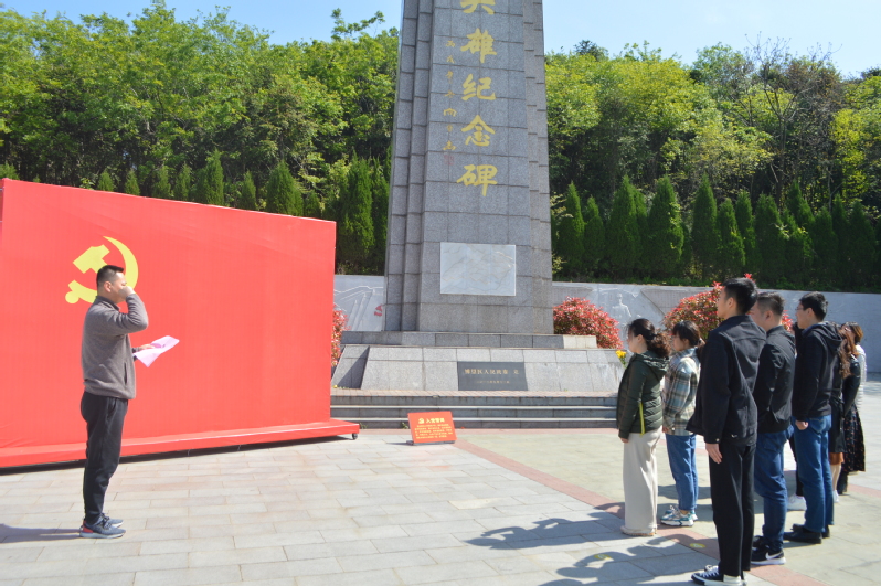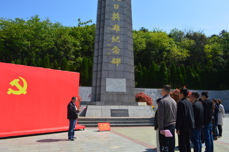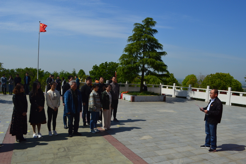 本网讯 为进一步接受党的优良传统教育和爱国主义教育,增强党性观念,加强党性修养,改善工作作风,充分发挥我系党总支、支部的战斗堡垒作用和党员的先锋模范作用。4月10日食品工程系党总支第一、第二支部全体党员老师在党总支书记胡风明的带领下,赴博望横山抗日英雄纪念碑开展了本次主题党日--党史学习教育。