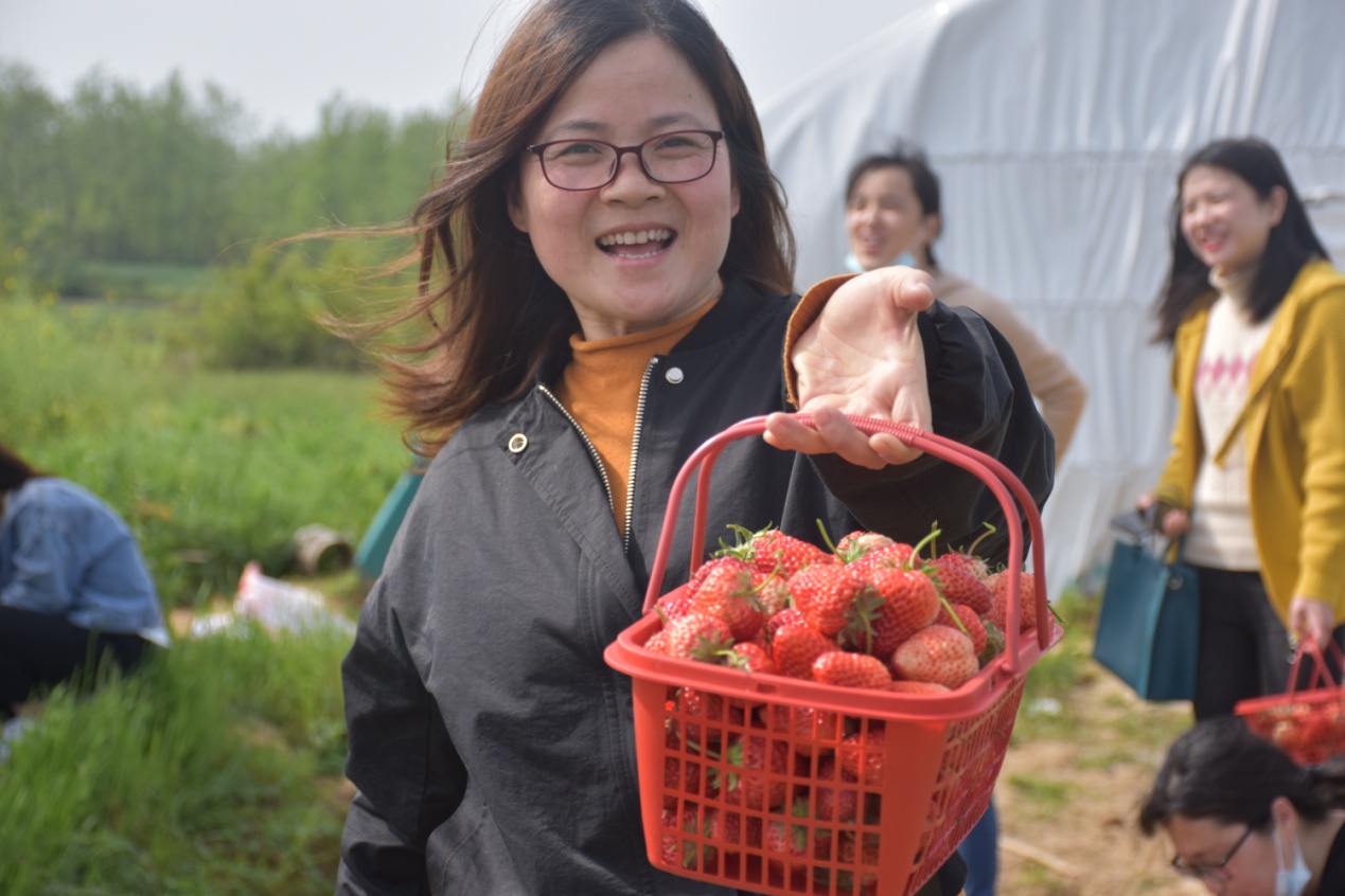 经过草莓种植园老板的一番指导,女教工们很快学会了如何辨别草莓的成熟度,以及采摘和保存方面的相关知识。大家一边采摘,一边交流,不亦乐乎。