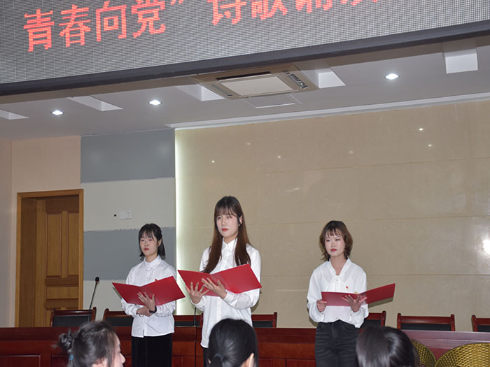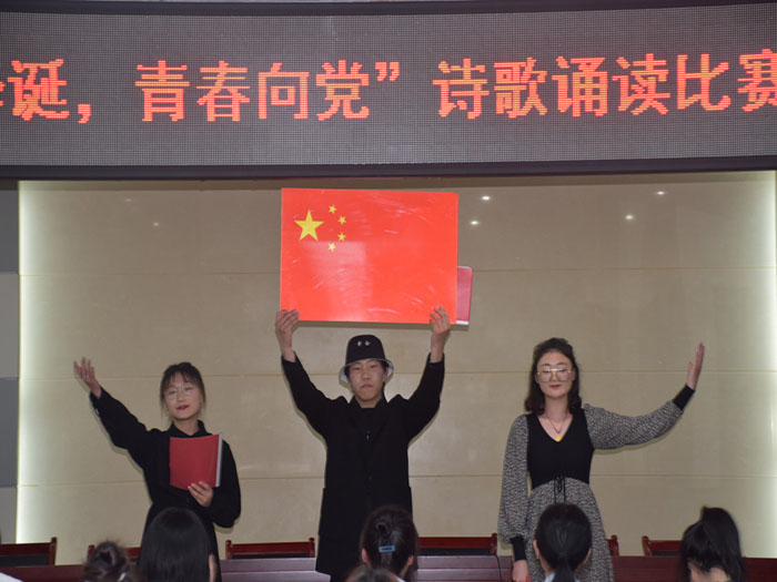 比赛开始前,选手们入座比赛场地,个个精神抖擞,准备大展拳脚。在主持人宣读完比赛规则和注意事项后,比赛正式拉开帷幕。选手们以诗歌为诉,或围绕说党史、叙党情朗诵诗歌,或通过朗诵红色经典忆党史,缅怀先烈颂党恩,大家以饱满的激情回顾和重温中国共产党成立100周年的光辉历程,讴歌党在改革开放以来取得的伟大成就。其中由2020级学前教育本科(1)班冯青、刘晓婧,2020级学前教育本科(2)班徐唱三人组带来的《信念永恒》,获得了其他选手们的满堂彩。她们声情并茂,激情澎湃的演讲让观众陶醉,仿佛身临其境。本次比赛还穿插了党史提问环节为比赛添彩,问答题围绕建党100周年以来的重要的知识提问,涉及范畴全面,选手们踊跃参与其中。在比赛中选手们各个斗志昂扬,会场内掌声此起彼伏。