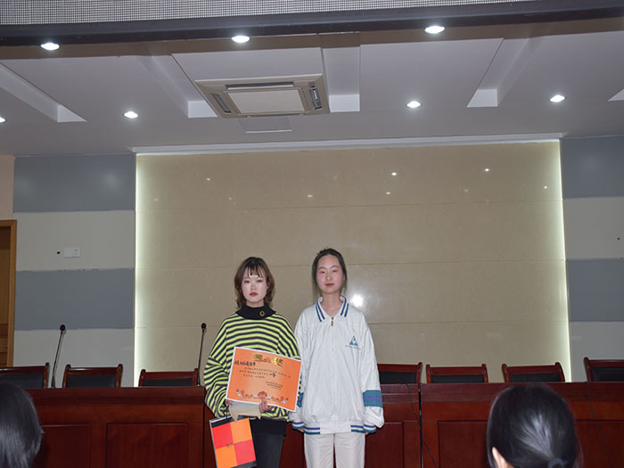 最终经过激烈的角逐, 2020级学前教育本科(1)班冯青、刘晓婧,2020级学前教育本科(2)班许唱因表现优异荣获一等奖;2020级学前教育本科(1)班刘益妹、刘祥薇、付玉薇、查可、卜乐玲、解文慧,2017级小学教育(2)班翟义荣荣获二等奖;2020级酒店管理(1)班王亚楠、杨子卓、刘家乐,2020级小学教育(4)班涂意虹、2019级英语教育(1)班朱曦雨,2019级新闻采编与制作(4)班吴卓荣获三等奖。比赛最后,刘敏、朱泉泉等人为获奖选手颁发奖状与奖品。本次比赛在大家共同努力下画上了圆满的句号。