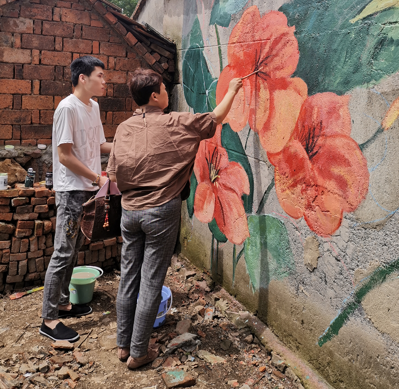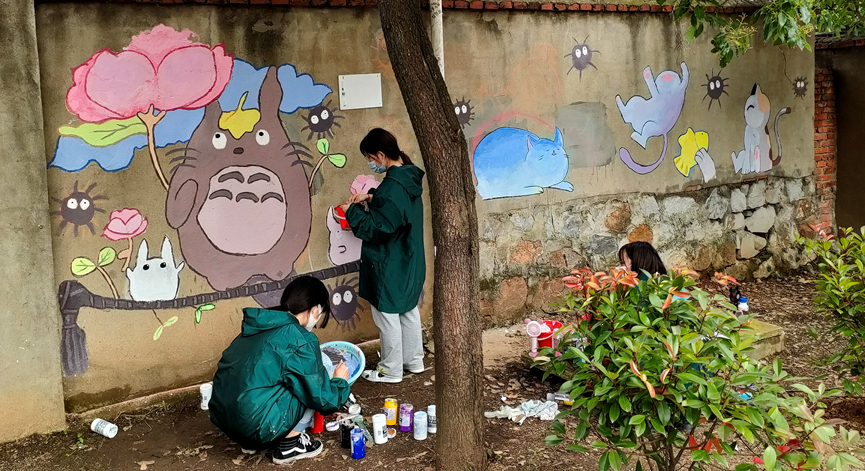 根据校党委此前调研时制定的方案,含山县林头镇毛滩村的文化墙的装饰绘制工作分为两个阶段的内容, 在2020年11月份第一阶段的绘制工作已圆满完成;现在进行第二阶段分批对林头镇不同自然村落进行美丽乡村的绘制工作,让“美丽村庄”成为推动乡村振兴的典范。