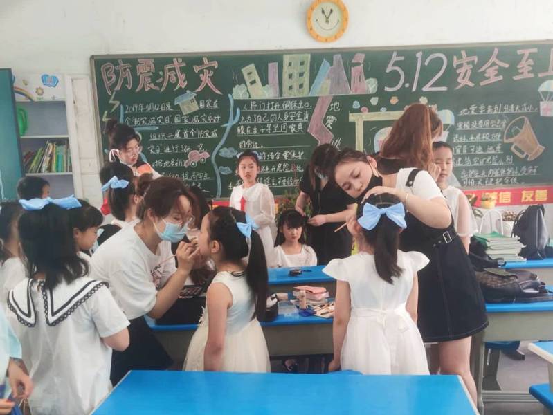 一到活动现场,我系的同学们就投入到化妆造型工作中。给小朋友化妆,不仅仅能够提升同学们的化妆技术,更加将理论知识化为了实践经验。活动中,同学们利用专业特长,为准备参加演出的二年级小朋友化妆。她们一边结合演出服装的颜色、款式为小朋友们精心设计、细心描画适宜的妆容。为了更好地增加舞台视觉效果,同学们抓住儿童天真可爱、不失真为原则。化妆修饰忌用成年人的化妆技法浓妆艳抹,略加修饰即可,在舞台氛围下显得小朋友们更加地精神而富有朝气。在精致妆容的点缀下,小朋友们的演出取得了圆满成功,她们的班主任纷纷为我系同学们热情的服务态度和精湛的化妆技术点赞。同学们纷纷表示有收获满满,不仅学到了化妆水平和技能,更重要的是,激励自己以更加积极、自信、年轻的心态去面对生活,努力创造精致优雅的美好人生。要将唯美、实用、创新的态度贯穿学习和生活中,让美成为一种习惯。
