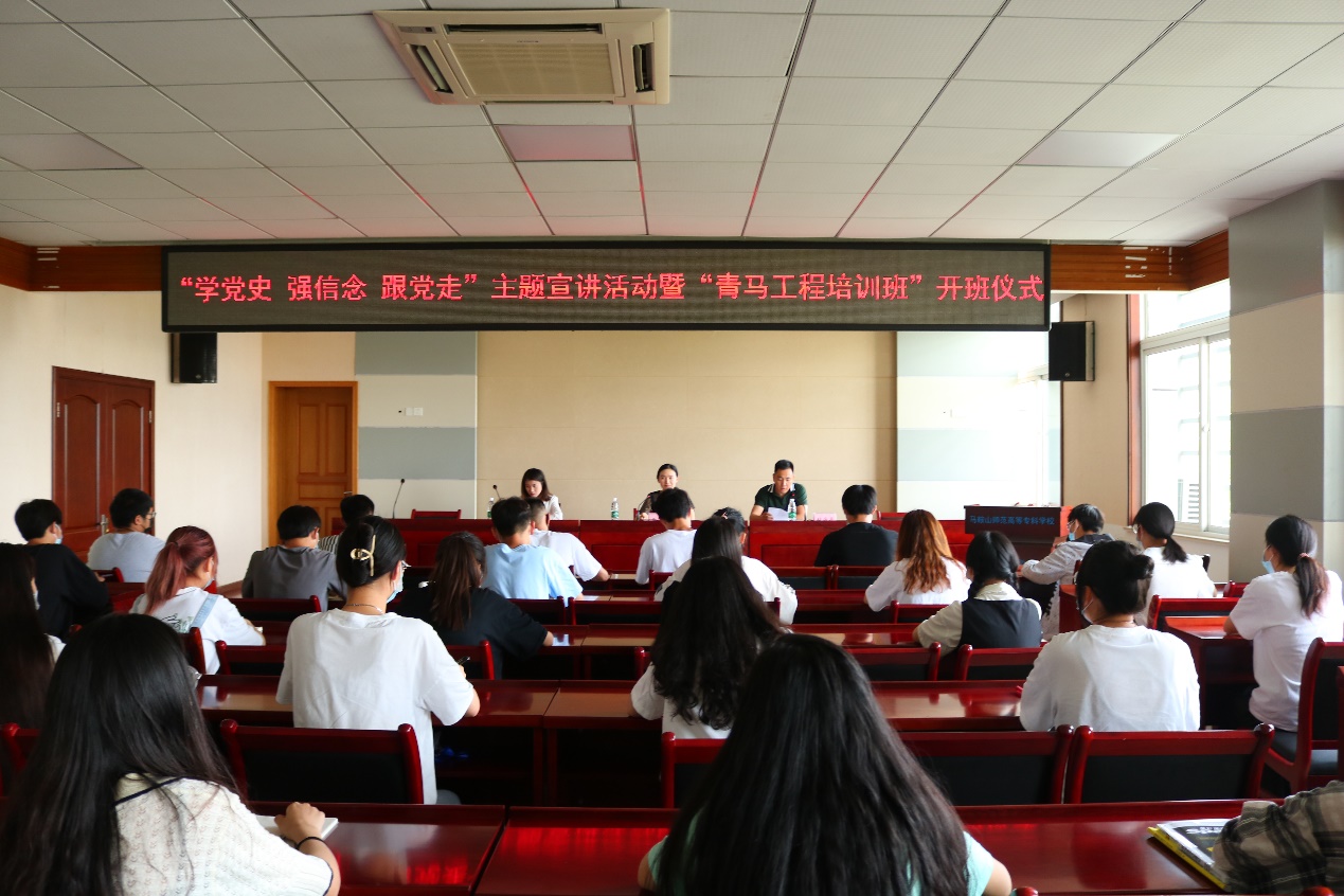 本网讯 6月10日12点30分,“学党史、强信念、跟党走”主题的宣讲活动暨第十九期“青马工程”培训班开班仪式在行政楼402会议室召开,团市委组织部部长孙婧出席此次活动并进行主题宣讲,校团委副书记张国平致开幕词,40名学生骨干代表参加开班仪式。