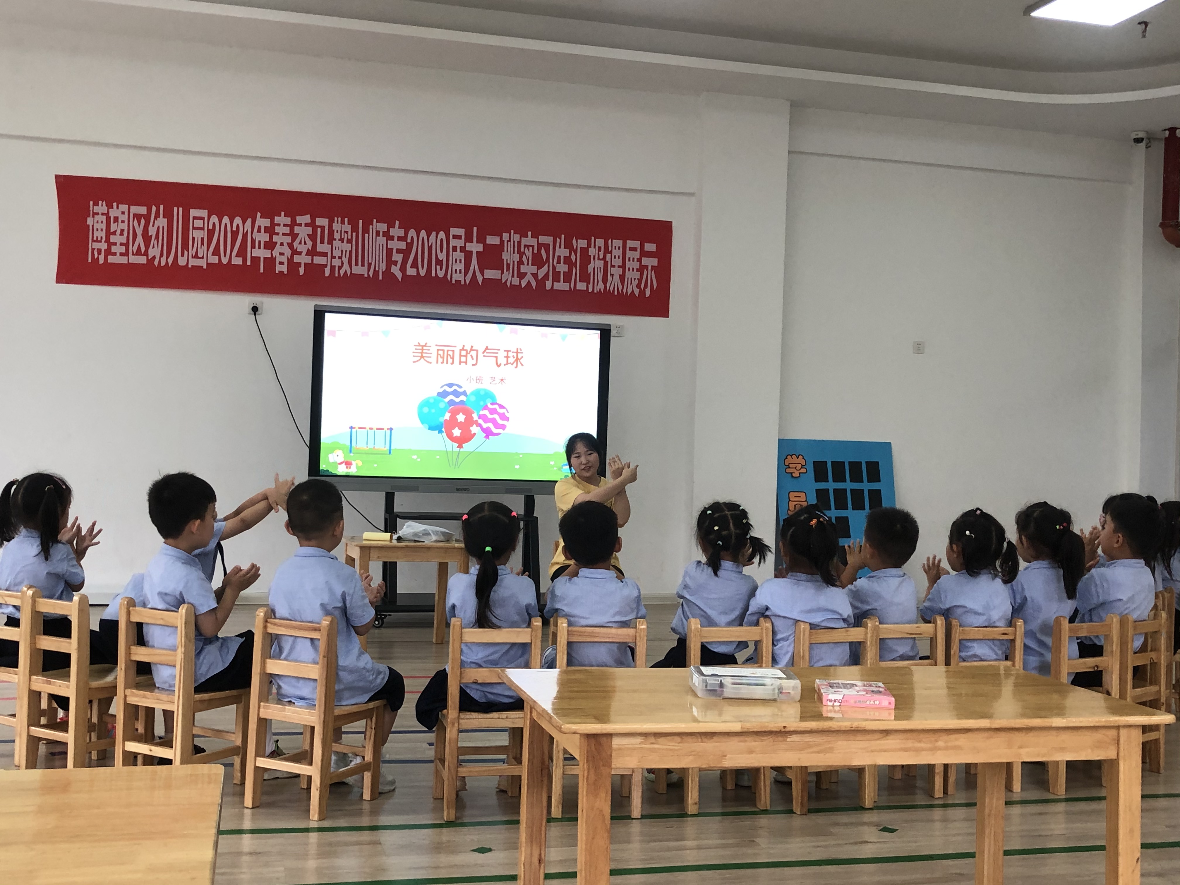 三节汇报课由三所幼儿园分别推出:荣博幼儿园钱钰的小班科学《树叶分类》、新市中心幼儿园汪承玉的小班艺术《美丽的气球》和博望中心幼儿园康明晨的大班艺术《父亲节》。三位实习生把2个月所学的全部展示得淋漓尽致,取得了较好的效果。课后,听课的老师对3人的汇报课进行了评议。吴德琴作为该点的实习带队老师,高度评价了3人的认真表现和成功之处,同时,也指出她们存在不足之处。