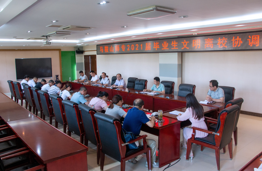 本网讯 为进一步做好文明离校教育,增强学生的母校情结和感恩意识,营造健康、和谐、文明的校园文化环境,确保毕业生安全、文明、有序离校。6月22日上午,马鞍山师范高等专科学校召开2021届毕业生文明离校协调会,校党委委员、副校长周志亮主持会议并讲话。